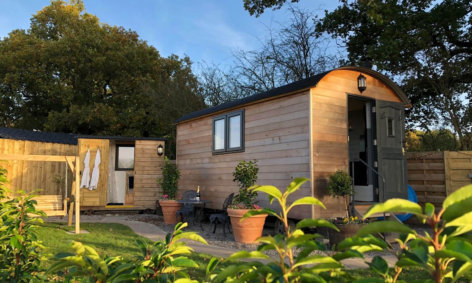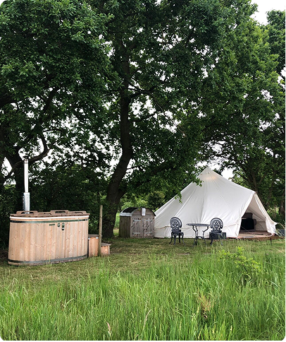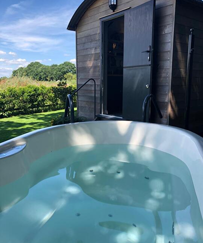 Enjoy a luxury retreat in our well-appointed bell tent and shepherds hut. Just relax and enjoy the fresh water wood fired hot tubs.