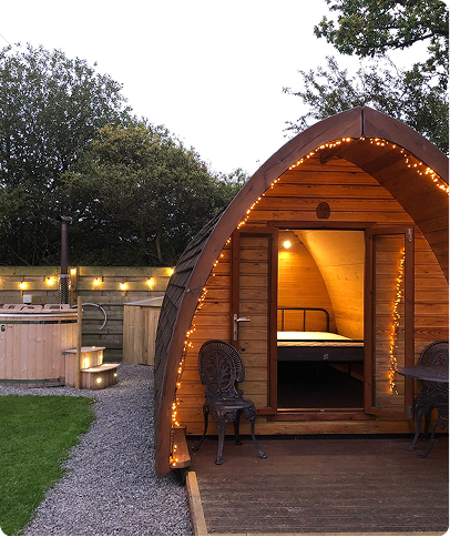 Create lasting memories in one of our pitches two with fresh water, wood fired hot tubs.